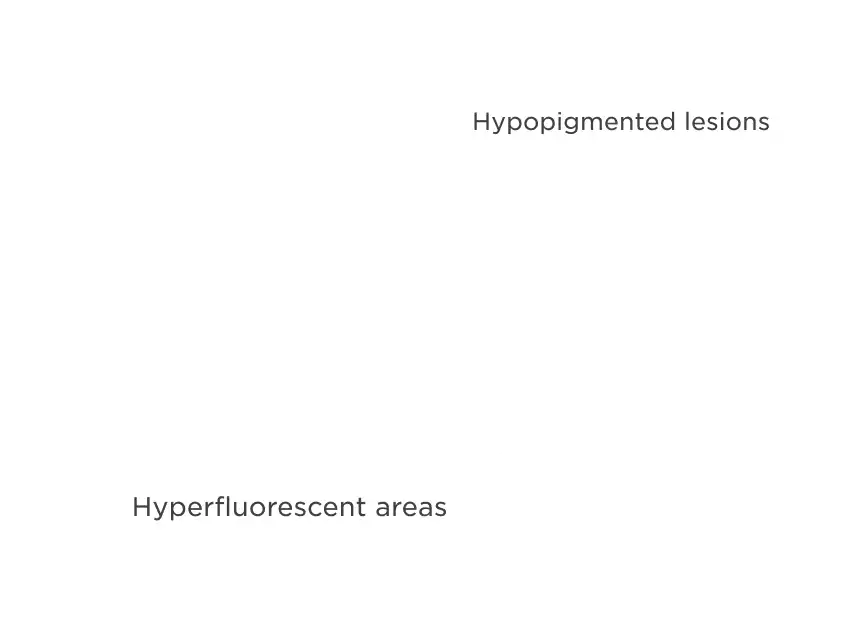 Hypopigmented lesions are often circular and sharply demarcated with increased choroidal visibility.2